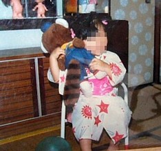 右:2歳頃の私です。ブンブンのぬいぐるみを抱いています。どれもこんなカットばかりで、まともにぬいぐるみの正面が撮影されたものは一枚もありませんでした・・・。