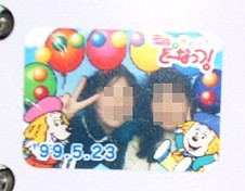 学生時代に友人と撮ったプリクラです。99年5月23日に撮影しているみたいですね。この当時はいろんなアニメや芸能人、キャラクターのフレームがあって、それがとても流行っていました。全身写るタイプ、スタンプ機能が出来たのもこの頃だったような??とても懐かしいです。最後に撮ったのはもう多分5年近く前だったと思います。今ではあのコーナーに立ち寄ることすら怖くてできません(笑)。