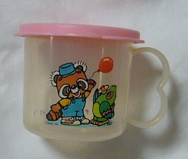 中:幼少期に使用していたコップです。多分1歳くらいの頃から使っていたと思います。何でもすぐに処分してしまうタイプの母ですが、これは捨てられなかったようです。蓋が付いていて便利だったため、小学生になっても風邪で寝込んだ時などに枕元に置いて使用してました。