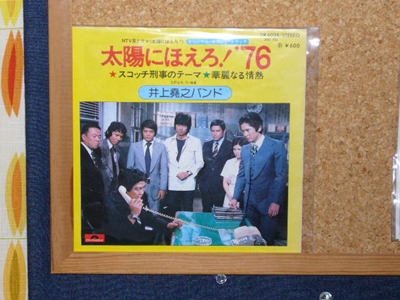 左上の76年のレコードはジャケ買いした物で、部屋のコルクボードに未だに貼っています。その隣は「松田優作展」に行った時にお店に貼る用のポスターをもらいました。(私だけがもらったのではなく、「ご自由にお取り下さい」となっていました)これも未だに貼ってあります。