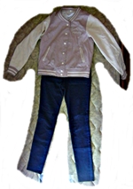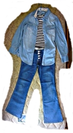 左上がジーパン、その隣がテキサス、左下がボン(初期バージョン)、その隣がスニーカーです。スニーカーは「違うだろう」という感じですが(色も違うし・・)後は結構イメージ通りなんじゃないかと思います。私はベルボトムが好きで、90年代後半~2000年代前半にかけてよく履いていたんですが、スキニー全盛の今はこの手の形は流行らなくなってしまったので全然着ていません(T_T) スニーカーのつもりで合わせた物だけが昨年購入したスキニーです。80年になると、途端にベルボトムからスリムに変わりますからね。