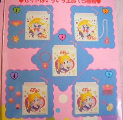 これも初期の頃の食玩(?)「セーラームーンポーチ」です。ポーチと言っても、ただのビニール袋にイラストが印刷されている物です。ちょっと前までは「りぼん」や「なかよし」の付録にもこういう物って多かったと思うんですけど、最近は食玩でも付録でもちゃんとした布製になっているのがスゴイと思います。
