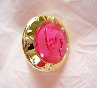 左:付属の指輪です。セーラームーンの「S」のロゴ入り!周りの装飾も細かいです!本当ならこの画像のピンク意外に青、紫がセットになってましたが、私のはピンク意外が欠品してました。