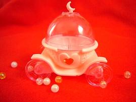 私より先に友人が持っていて、勉強机に飾っていました。見せてもらった私はそのカワイさに一目ぼれ。早速お菓子売り場に探しに行きました。扉や蓋、車のクリア部分と本体の色の組み合わせは、箱の写真にあるようにいろいろあったようです。写真より実物の方がかなり可愛いと思います。どうせなら全部集めればよかった・・。