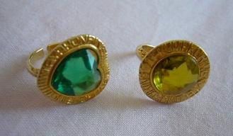 指輪はこの通り取り外しができます。黄色の方が「テクマクリング」緑の方が「マヤコンリング」というそうです。左側のリングを抜くと黄色の部分が光らず、右を抜くと緑の部分が光らなくなります。両方はずすと赤い部分しか光りません