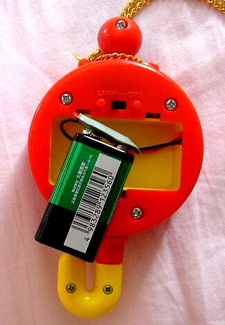 ペンダントの裏側です。花の子ルンルンの「魔法のかぎ」と同じく、電池蓋が今ではありえない姿です。し・か・も・導線がむき出し!!入れるのは簡単でしたが、はずすのに結構コツが必要でした。これだと扱い方によっては電池交換の時に導線が切れてしまいそうですよ・・・。さすがにちょっとびっくりしました。