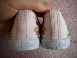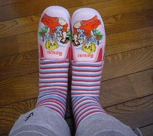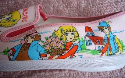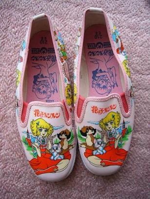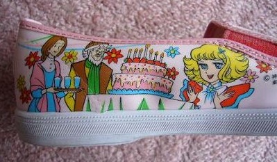 アニメ柄の他にも花柄とか何かのキャラのパチモノとか、何のキャラかよくわからない物とか、いろんな絵柄があったと思います。私は、こういう靴に思い入れがあり、とても魅かれるのですが、そのことについてはまた別の機会に詳しく書こうと思います。