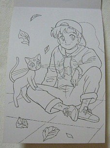 色は「サインペン」で塗られていて、肌だけ色鉛筆です。ペンで塗る時、肌色ってどうやって塗るか子供の頃迷いましたよね??コピックの肌色を知った時は感激でした。
