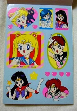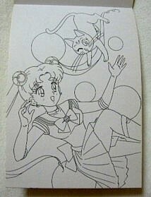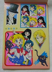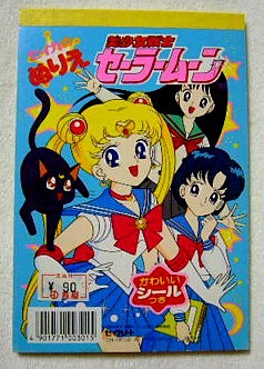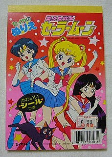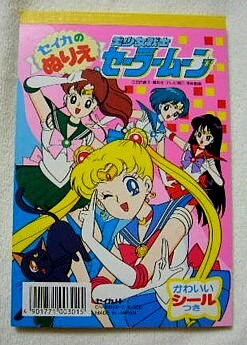 これは表紙もシールもまこちゃん大PUSHですね。うさぎの髪の毛の描き方がその後のシリーズに近づいています。亜美ちゃんとうさぎちゃんの私服ファッションがいかにも「セイカのぬりえ」って感じですね。「リリカルレナ」「ファッションララ」とか「ファニーツイン」とか・・・。