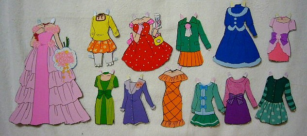 私も小さい頃いろんなきせかえを持っていました。メイプルタウン物語、かぼちゃワイン、ステップジュン等のアニメキャラから、キティちゃん、キキララ、ボタンノーズ等のサンリオ系、リカちゃん人形と服の写真が紙に印刷されている物(今もあるんだろうか??)あとはセイカやショウワノートのオリジナルキャラとか、欲しい人形がない時は自分で作ったりもしました。