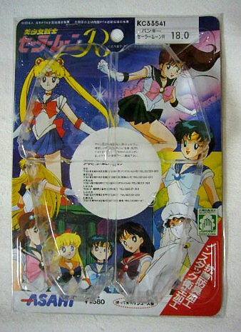 放送当時、変身アイテムや攻撃アイテムのおもちゃも羨ましかったですが、それ以上にこういう靴や衣類がとても羨ましかったです。というのも、無理をすればバッグ類も使えないことはないし(現に高校時代に同級生がセーラームーンのプールバッグを使用していた)、食器類や箸などの生活用品も家でこっそり使用することができます。おもちゃだって、家で遊ぶことができますが、靴や衣類はどんなにたくさん買い集めてもサイズが合わなければ絶対に利用することができないアイテムだったからです。アニメグッズに限らず、普通の服や靴に関しても「はいらない物」については持っていても虚しくなるだけで全然意味がないですよね・・・。