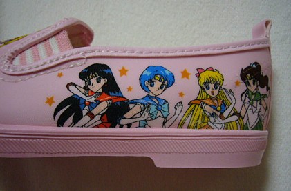 こちらやこちらで死ぬほどしつこく語っていますが、我が家はあまりこの手のグッズを買ってもらえなかったため異常に思い入れがあります。今でもこの靴の24センチが出たら絶対に予約してでも買いますよ。・・・と言っても、近年ではこのタイプのビニール靴は子供向けですら発売されておらず、キャラ靴自体のサイズも19センチまでになってしまって(セーラームーンの頃は20センチまであった)、ますます履ける日は遠のいてしまったようです(>_<) せめてスリッパ(サンダル)くらい発売してくれないかな・・・。ビーチサンダルでもイイですね~。ロゴだけとかシルエットだけとか、そんなオシャレにした物ではなく、もちろんセーラームーンのイラストがバーン!と描かれてるやつですよ。
