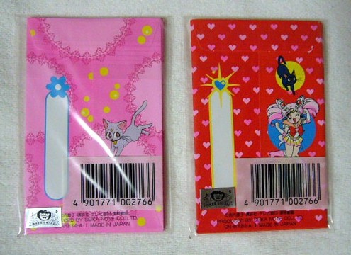 懐かし可愛いセーラームーンスーパーズのポチ袋(お年玉袋)です。おそらく95年年末に発売された物だと思いますが、私が入手したのはそれから数年後で、90年代後半~2000年くらいだったと思います。下宿先の近所の100均で売られていました。当時大学生で家を離れていて、高校の頃までの友人によく手紙を書いていて、その時にこれに何か小さなプレゼント(?)を入れたり、大学の友人と撮ったプリクラ(懐かしい!!!私にもこんなことをしてた時期が確かにあった・・・(T_T))を入れたりして使用していました。このセーラームーンの袋も何枚か減っています。