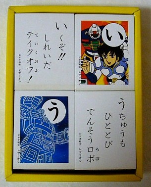セイカのレザリオンかるた!!当時はどうだったのかわかりませんが、かるたというのは大抵シーズン物扱いで、年末~正月にかけて販売されるんですよね。おまけに当時は子供向け番組がたくさんあったので、同時期にいろんな番組のかるたが発売されていたんじゃないかと思います。その中でこのレザリオンかるたが一体何箱くらい売れたのかとても興味がある所です。