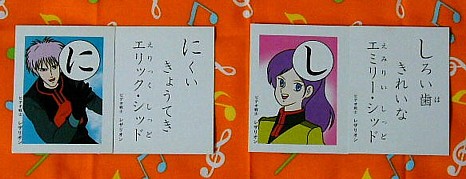 このかるたがいつ作られた物か不明ですが、発売されていた年末はジャーク編も後半に突入していたというのに、なぜか敵は反乱軍のままでした。前半を見ていなかったちびっ子達にとっては「誰??」という感じだったんじゃないでしょうか??おまけにもともと二人ともゲスト扱いだったし、妹の方は名前すら間違えられてるし(放送時はケティ)。