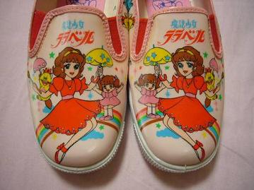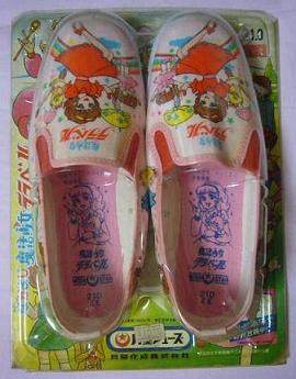 小学校高学年の頃はこの靴に憧れましたが、それ以前の小さい頃に憧れたのがこの靴です。いろんな所で触れてますが、我が家ではこういうアニメキャラの付いた衣類や靴は「かっこ悪い」というだけの理由であまり買ってもらえなかったのです。確かに、どんなに可愛い服や高そうな服を着ていても、この靴を履くだけでそのグレードが急降下してしまうという恐ろしい靴なのですが、私は未だにこの靴が大好きです。フォーマル服やワンピースには似合いませんが、Tシャツにジーパンとか半ズボンとか、カジュアル系の服装に合わせれば普通に可愛いと思います。