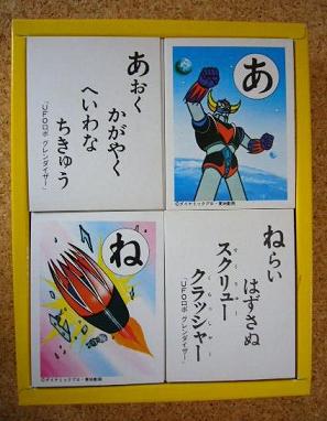 今回はこちら。お正月に重宝しそうな「グレ ンダイザーかるた」です!!このかるたの名作ぶりは随分前から知っていまして、欲しいと思い続けていた品です。近年やっと手に入れること