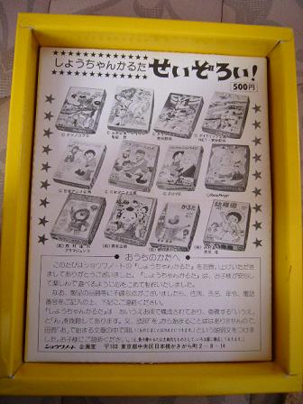 箱のイラストは、ぬりえやテレビ絵本のようなタッチのアニメに忠実なセル(?)バージョン、そして「絵師」(?)の方によって描かれた気合の入ったイラストバージョンの2種類ありますが、内容は同じようです。私が持っているのは後者になりますが、どうも古臭いし怖い・・・。気合と気持ちは感じることができますが、やっぱり普通のセルっぽいやつの方がイイです。