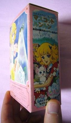 右:箱を上から見た所。値札も当時の物でしょうか。最初は剥がしたんですが、これもある意味貴重かも・・ともう一度貼りなおしました(笑)。シルバニアファミリーの人形と同じような価格ですね。