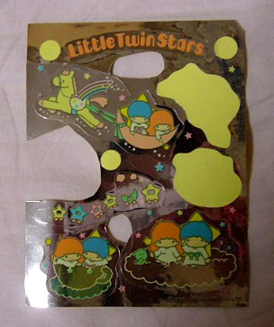 これは昔から家にある物です。シールを切り取ってあるのが懐かしいです。普通にはがして使えばいいのに、子供の頃はこういう「やらなくていい作業」をよくしていました(笑)。切り取ると後で見た時に汚い感じがするんですよね。収納しやすいようで、逆にしにくくなるし・・・。他にも、台紙から切り取ってバラバラにしただけで使用してないシールが我が家にはたくさんあります・・。月の馬車に乗ってるキキララが可愛い・・・。 2011年2月2日 記