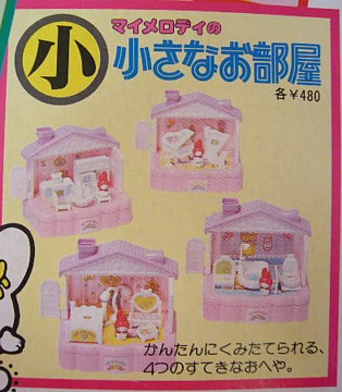 「マイメロディの小さなお部屋」、キティちゃんの「ちっちゃな町」のマイメロディバージョンでしょうか。ピンクと白の色使いと姫系な家具がとても可愛いです。「ちっちゃな町」と一緒に再販しないかな~。もしそうなったら子供よりもインテリア&コレクション用にコレクターの大人達によって買占めされそうですね(笑)。