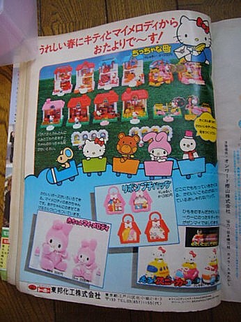 小学館の幼稚園83年3月号に載っていたキティちゃんとマイメロディのおもちゃです。