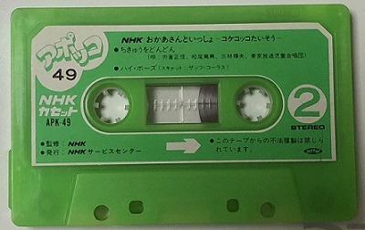 | コケコッコたいそう | こちらに収録されている「コロムビアバージョン」(というのだろうか?)と全く同じものです。 ただ、このカセットは幼少期にあまり聴かなかっただけあって傷みもなく、未だにわりと音質がイイです(笑)。 |