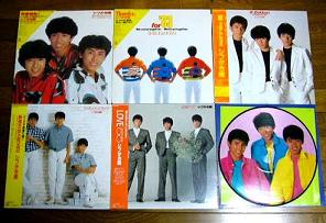 LPは、早速MDにダビングしました。欲しかった2枚以外はほとんど内容を調べず、届いてからのお楽しみにしていたんですが、9枚のうちの2枚(左:下の段右端&右:上の段右端)はベスト盤で、曲がダブりまくり。全く意味がありませんでした・・。そのうえ、収録されていたシングル曲はやっぱり「スシ食いねェ」までで、見事にそれ以降のは一曲も入っていませんでした(笑)。「恋人達のBlvd」とかは一生聴けない運命なのか・・(笑)。右:上の段左端は、なんとフッくんのソロです。このジャケットがすごくインパクトがあるんですよ。