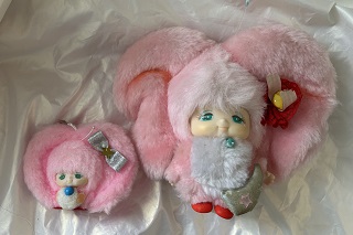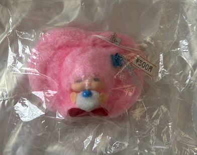 右は、実はもう一個同じのを持っています。こちらは保存用(?)として入手した時のまま未開封です。左の物とは羽についているリボンとスパンコールが違っています。これもいろんな種類があったんでしょうね。スパンコールだけでなく、リボンにも違いがあるなんて凝ってるし可愛いですね。500円の値札は、当時の物なのか近年になってどこかのショップで付けられた物なのかわかりません。