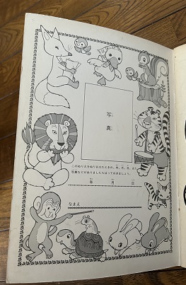 最後のページ(裏表紙)は昔の定番の「このぬりえを塗り終わった日を記録しておきましょう」のコーナー。わざわざ写真を貼ってちゃんと記録した人はどのくらいいるんでしょうか。でも、記念になっていいですね。このあたりは、現在の親の方がマメにやりそうな気がします。子供の画像をシールにして貼るとか、今の方が簡単にできるし。