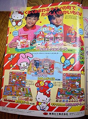 小学館の幼稚園81年12月号に載っていたキティちゃんとマイメロディのおもちゃの広告です。