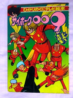 この絵本はわりと最近入手した物なんですが、この表紙がまたカッコよくてお気に入りです。009を中心にまとまってます。・・と思ったら、一人、二人・・あれ・・?ひとり足りません(汗)!!!さてこの表紙に入っていないのは誰でしょう??ファンの方なら「ああ・・!!」となんとなく納得していただけるかもしれません・・。とはいえ、9人揃ってのサイボーグ戦士ですから、欠員はやっぱりいただけませんよね(^_^;)