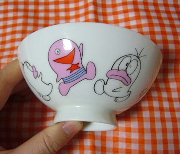 ちなみに、このQちゃん以外ではもっと小さい頃「怪物くん」の茶碗を使っていました。そして中学の頃は「幽遊白書」、今どんな茶碗を使っているかというと「ドラえもん」なんですよ(笑)。と言っても、こういうお子様仕様の物ではなく、ちゃんと大人用に作られていてオシャレな感じにアレンジしてある物です。それも使い始めて10年近く経ちますが、食器洗い機にかけても色が落ちないスグレモノだったりしてお気に入りなのでまだまだ買い換えるつもりはありません。いつか機会があればそれも紹介したいと思います。