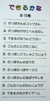 最後に、本のカバーに載っていた「できるかな」の絵本のタイトルです。