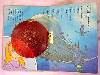 ビニール袋がページに張り付いていて、その中にソノシートが入っています。この赤い透明具合が懐かしすぎ!!未開封でしたが、聴いてみたかったので開封しました。もちろんちゃんと聴けましたよ。もっと音が悪いと思ってたんですが、私の耳にはCDで聴くのとあまり変わらないように感じました。ちなみに収録されているのはOPテーマのみです。