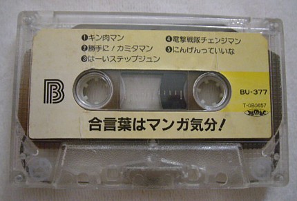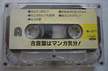 このカセットの一番のつっこみ所はこのタイトルですね。「合言葉はマンガ気分!」って一体どういう気分なのかと・・(笑)。でも、中身の方はそんなに変なバージョンはなく、普通に聴ける方だと思います。これは当時ホームセンターで購入したような気がします。この頃、両親が家のリフォームと模様替えに凝りまくっていたので毎週のように土日はホームセンター通いをしていたのが思い出されます。懐かしい~!!ちなみに、このカセットの中の本命は「勝手に!カミタマン」(笑)。マイナーですがすごく好きでハマってたんですよ~。
