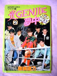 上に載せている「光GENJIに夢中」は88年か89年に購入した物で、マーガレットに連載されていた漫画です。映画やドラマの撮影の様子、歌番組の様子がフィクションを交えながら描かれています。ほのぼの系で絵柄も可愛く(しかも似てます!)今読んでもなかなか面白いです。買ったのはこの1冊だけで、なぜか2巻・・(笑)。