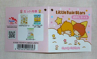サンリオ50周年記念の復刻物の一つです。こちらで紹介しているキティちゃんとキキララのケースと同時に発売された物になります。中身は下の画像(タグ)にあるお菓子でした。