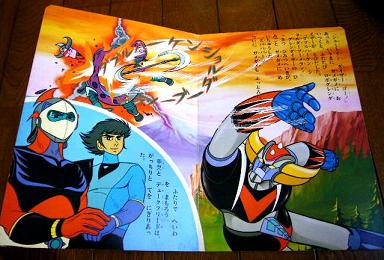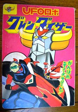 グレンダイザーといえば、このあたりでハマりっぷりを公開させていただいたほど大好きなアニメで、当然のように集めてしまった絵本であります。放送されていたのは75年~77年。前回のマジンガーほどではありませんが、この絵本も痛んでいて、表紙のビニールコーティングが半分以上剥がされています。ここまできれいに剥がされているのが逆にすごいと思います。内容はというと・・