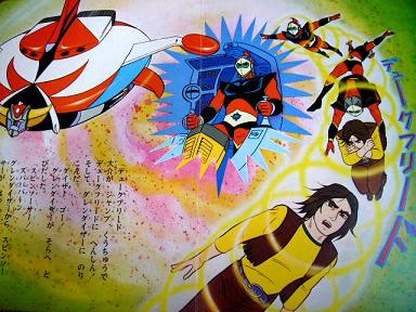 この絵本が素晴らしいのが、「事が起きると甲児が先に飛び出してピンチなり、それを大介が助けにいく」というパターンがちゃんと引用されているところです(笑)。それに、アメリカから帰ってきた甲児を大介に紹介するシーン(何気に、大介の後ろに所員の一人、山田さんが描かれているのもポイント高し!!)や、アニメでは語られるだけだった「大介の生い立ち」(フリード星から脱出して所長に助けられた、というシーン)がイラストになっているのもかなり貴重です。大介の変身シーンも細かくて良すぎ!!
