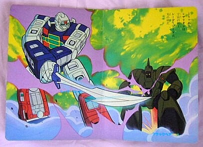 ・・・みたいな感じで終了です。他の絵本の所でも語ったのですが、必殺技が違うだけでロボットアニメの絵本はどれも似たような内容ですね~。その戦いに行き着くまでのシチュエーションが大事なのに~・・と思うんですが、限られた数ページの間にそんなことを書いていたら、収まりきれないですからね(笑)。仕方ないとはわかってるんですが・・。とりあえず、普段の技と必殺技(とどめを刺すシーン)は必ず入れるように・・というきまりみたいな物があるんでしょうね。