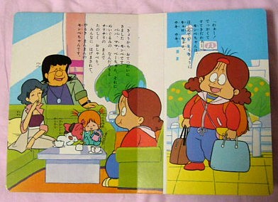 小さい頃、このペーちゃんが可愛くて仕方がなかったのを思い出します。一人っ子だった(今でも一人っ子ですが)せいもあり家に赤ちゃんがいるというのは憧れだったような気がします。私に限らず、小さい女の子は自分より小さい子を世話するようなシチュエーションが好きですよね。自分自身がまだ手がかかる存在だというのに・・。ちなみに、ペーちゃんって見た目は女の子にしか見えませんが、実は男の子なんですよね~。