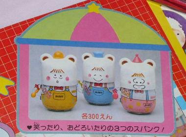 覚えてませんでしたが、当時はこんな感じで売られていたのですね。パステルな色使いといい、今見てもとても可愛いです!!ぜひ顔(蓋)の部分も入手したいところです。小物入れとして使うのに普通に可愛いですよね。スパンク自体が大人が使用しても恥ずかしくないデザインですし。
